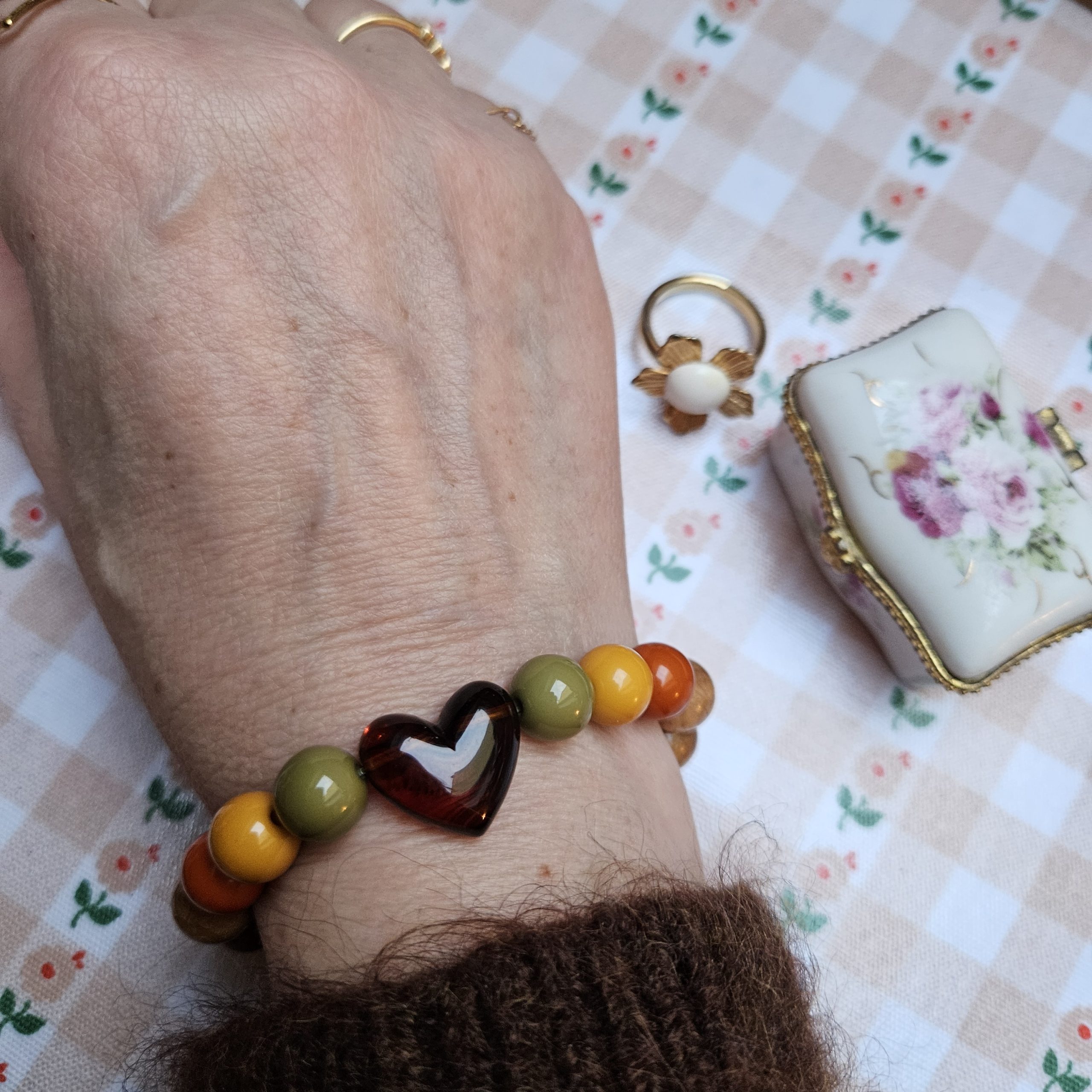 Bracelet coeur ambre foncé