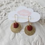 Jolie paire de boucles d’oreilles dorées martelées aux pastilles émaillées .